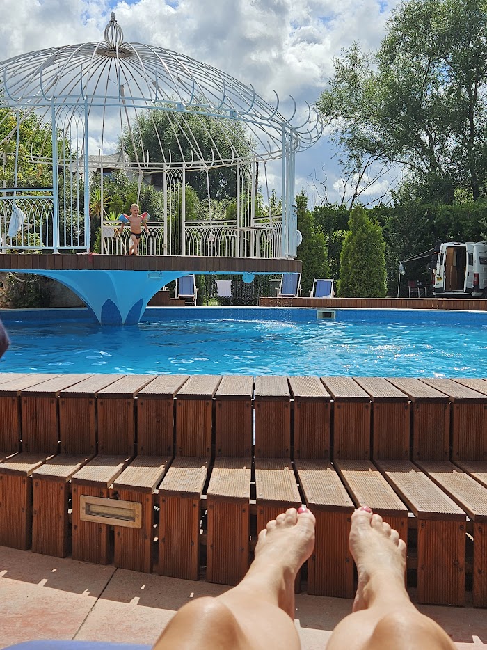 De kinderen wilden heel graag een camping met zwembad met een glijbaan. Het zou de laatste camping worden voor we ook daadwerkelijk in de Balkan aan zouden komen, dus ik koos voor een vrij luxe camping wetende dat dit de aankomende weken hoogstwaarschijnlijk niet meer zou lukken.