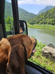 We vertrokken de volgende ochtend niet laat, want we hadden een tripje geboekt op de Uvac rivier. Online vond ik meerdere aanbieders waarbij je een boottocht kunt maken over de prachtige rivier, een bezoek brengt aan een grot en de berg oploopt naar een fantastisch uitkijkpunt. Vooraf had ik gevraagd wat de mogelijkheden zijn met 2 jonge kinderen en 3 honden. Dit was geen probleem! Deze dagtrip is echt een aanrader!