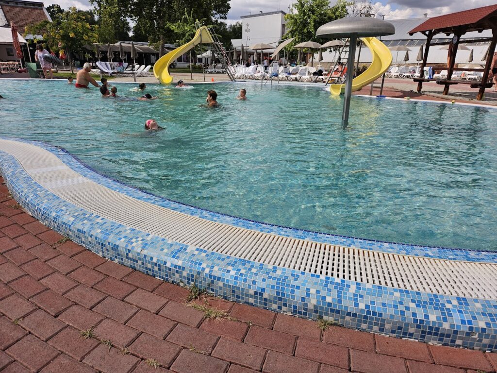Het bleek een heerlijke camping met zwembad en verschillende thermaal baden. In totaal zijn er op de camping 10 verschillende baden met water van verschillende temperaturen zowel binnen als buiten. De kinderen lagen hele dagen in het water en wij konden heerlijk relaxen in de thermaal baden. Dit zat allemaal bij de prijs in. Minpuntje was dat de kinderen niet in het zwembad met de grote glijbanen mochten. Hier waren onze kinderen van 5 en 6 jaar te klein voor.