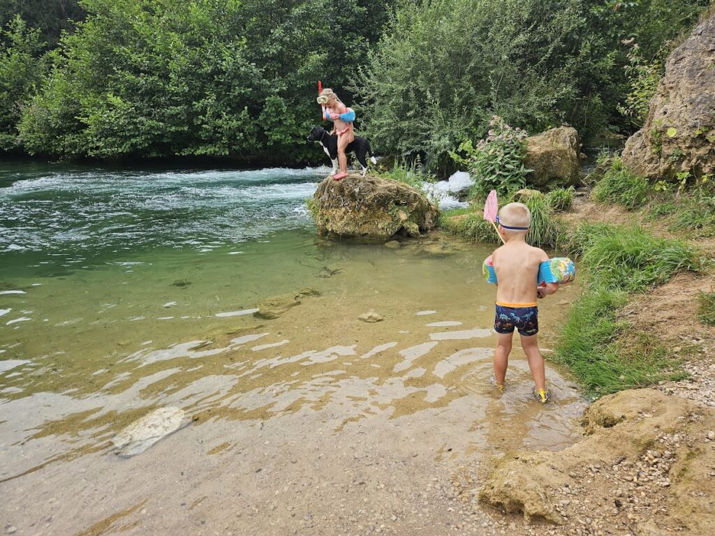 Vanaf de achterkant van de camping loop je in 10 minuten naar een rivier waar een klein strandje is aangelegd. Hier kun je heerlijk afkoelen.