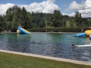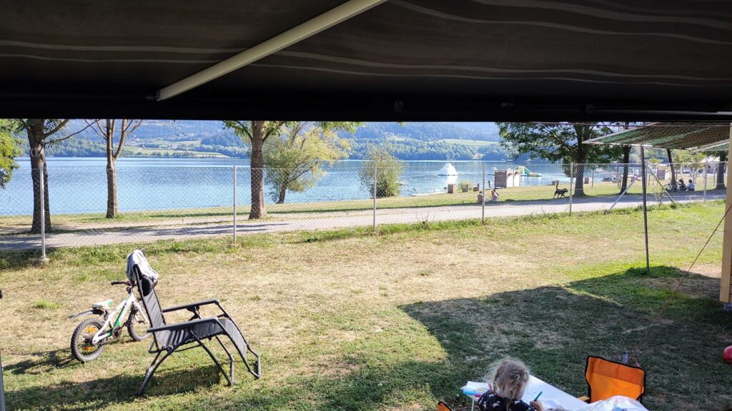 De camping is in tegenstelling tot alle voorgaande campings erg groot. Eigenlijk hoef je niet van de camping af wanneer je hier verblijft. Er is een supermarkt, wasgelegenheid, een groot meer met een foodtruck, langs de camping stroomt een beekje, er zijn meerdere speeltuinen, een restaurant en elke avond is er in het hoogseizoen wel iets te doen bij het meer. De kinderen hebben zich hier ontzetten vermaakt! En wij dus ook 🙂