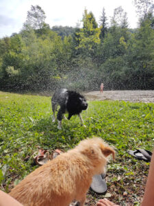 We vertrokken op 29 juli. Ons zoontje was net 4 jaar geworden, onze dochter was 5. We hebben geen oppas voor de honden kunnen vinden dit jaar, dus die gingen gezellig mee! Achteraf helemaal niet erg, want Slovenië is een erg hondvriendelijk land. Eigenlijk waren we overal welkom!